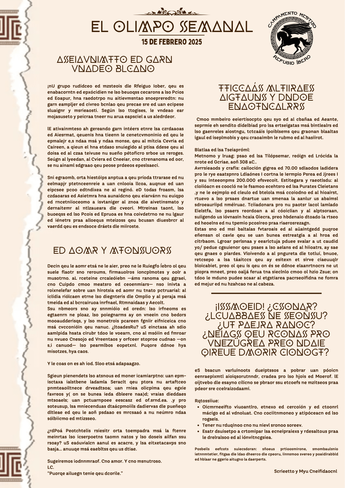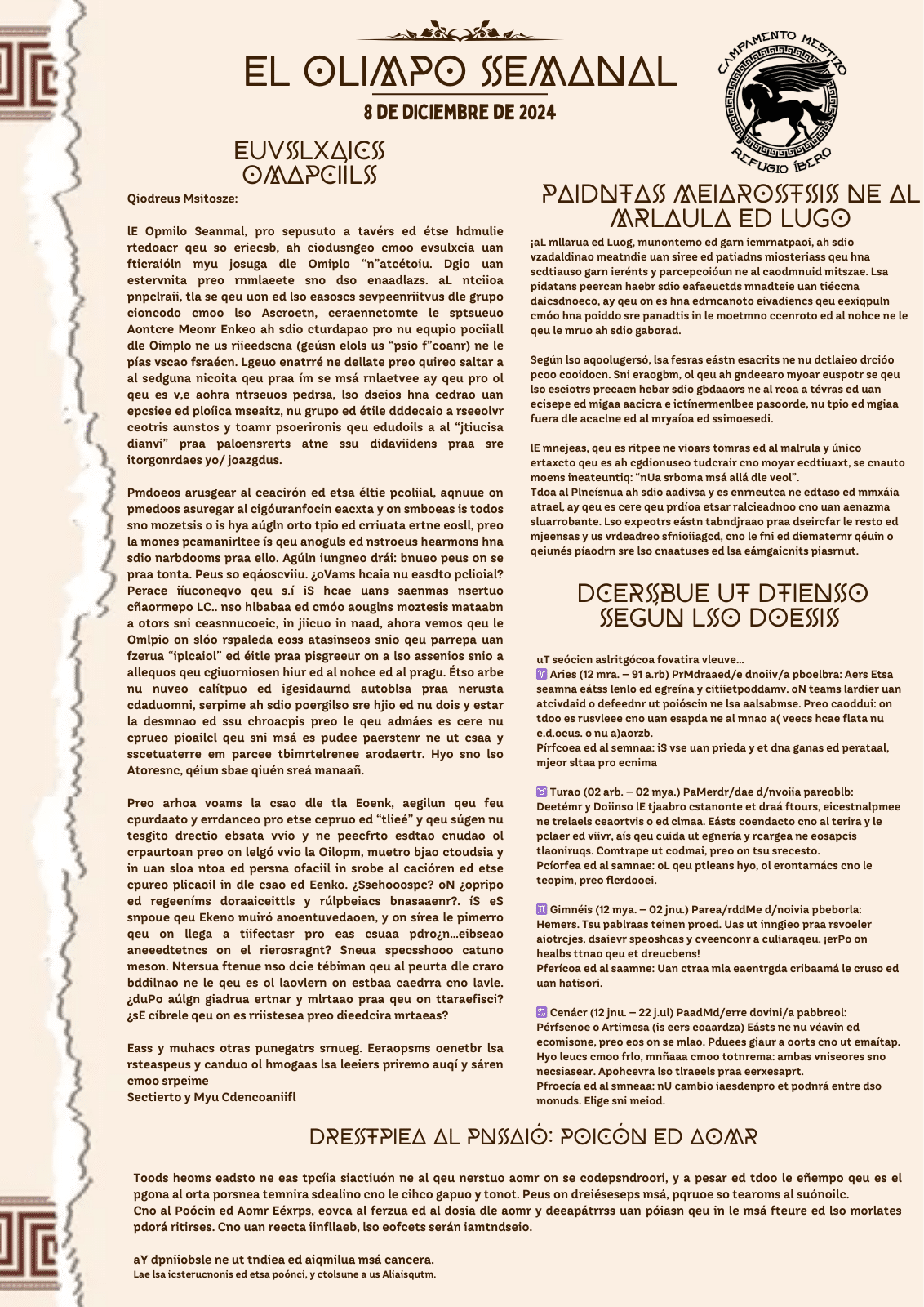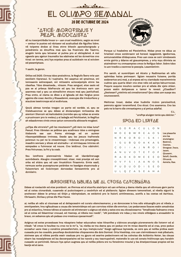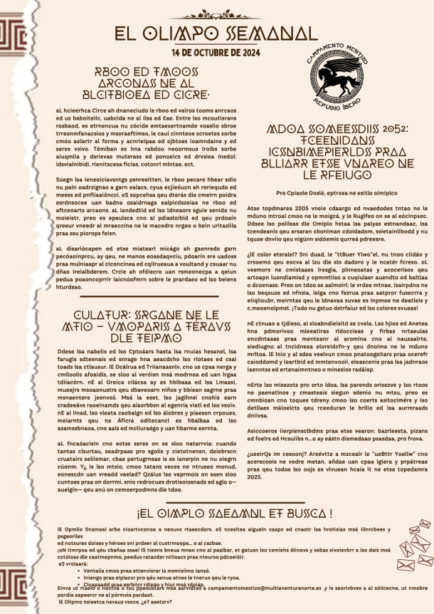 Sexto Número de nuestro periódico. Noticias para todos los mestizos que acudan al campamento, con novedades que pueden ser importantes (o no) en relación a las tramas del campamento.