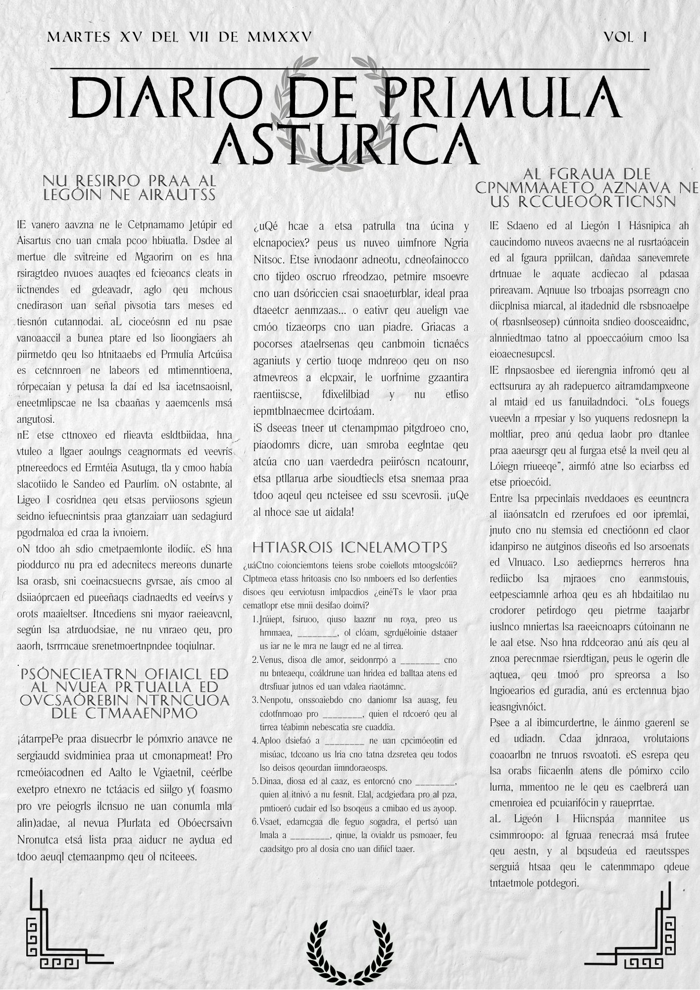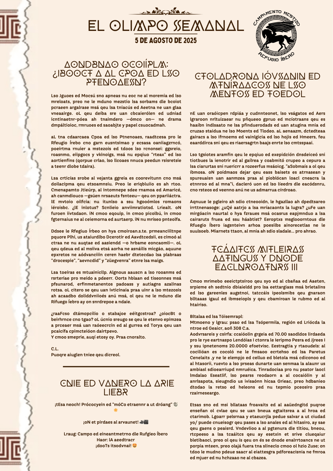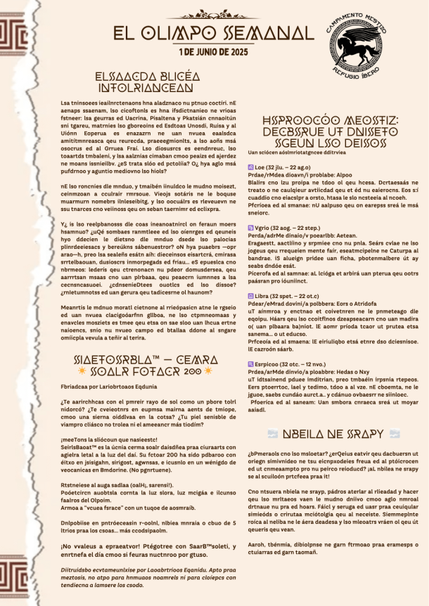 Sexto Número de nuestro periódico. Noticias para todos los mestizos que acudan al campamento, con novedades que pueden ser importantes (o no) en relación a las tramas del campamento.